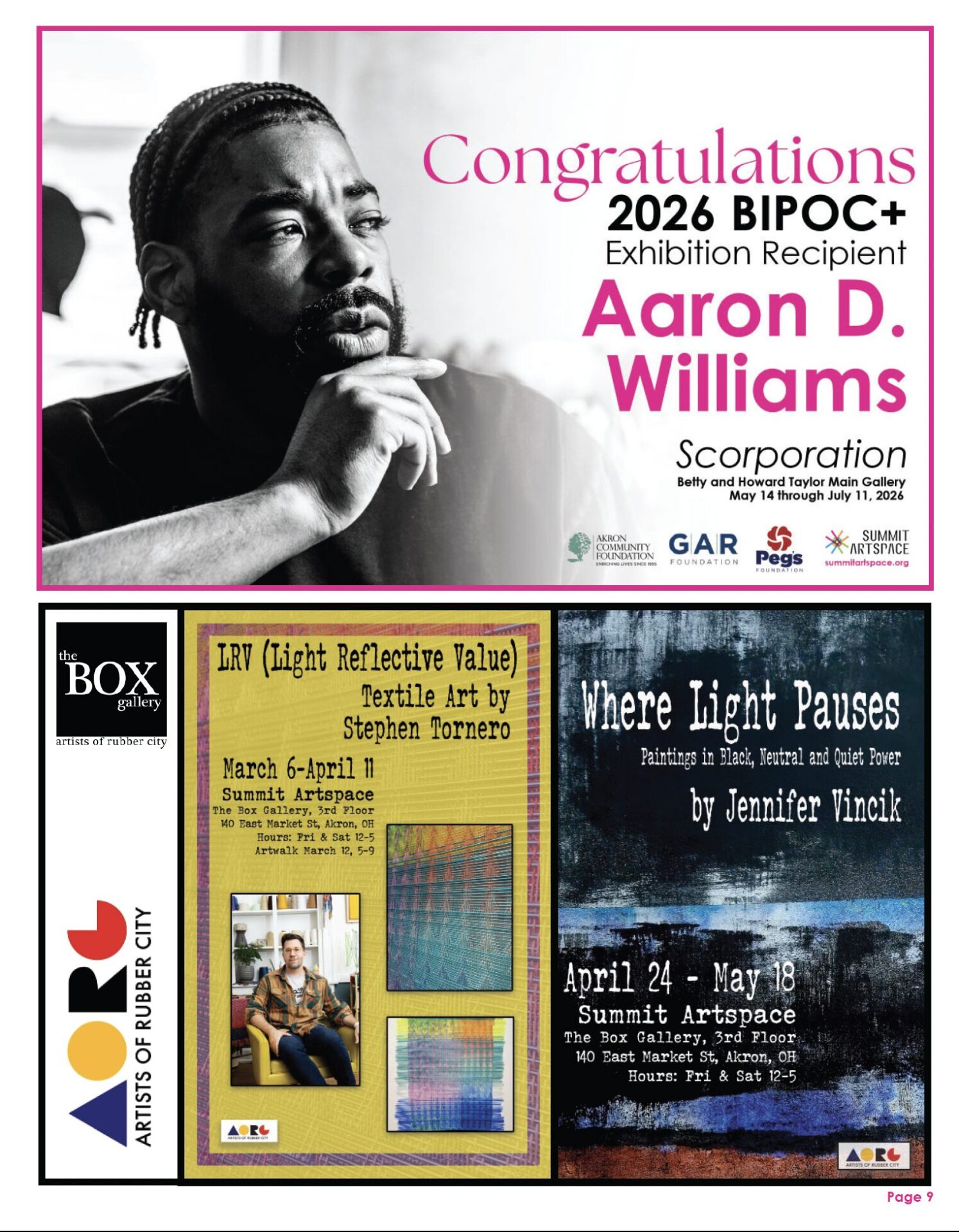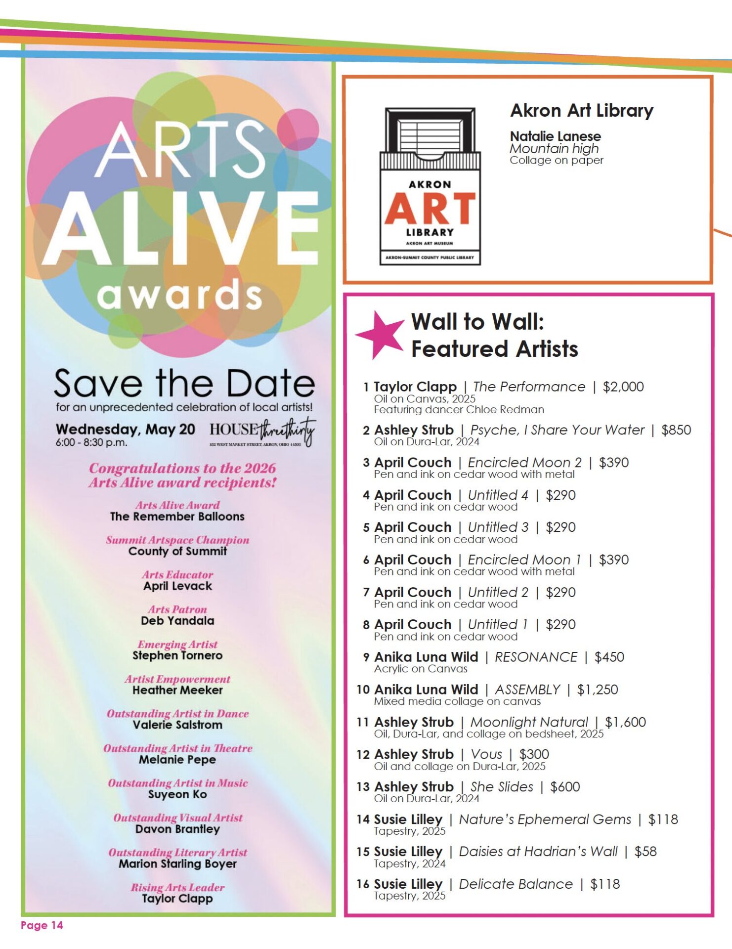 Kaleidoscope is an annual holiday show presented by the Alliance for the Visual Arts (AVA). This show is open to all members of AVA organizations: Akron Society of Artists (ASA), Artists of Rubber City (AoRC), Cuyahoga Valley Art Center (CVAC), Medina County Art League (MCAL), Ohio Collage Society (OSC), and Women’s Art League of Akron (WAL). This year’s exhibition is juried by Jeffrey Katzin, PhD, Senior Curator at the Akron Art Museum.