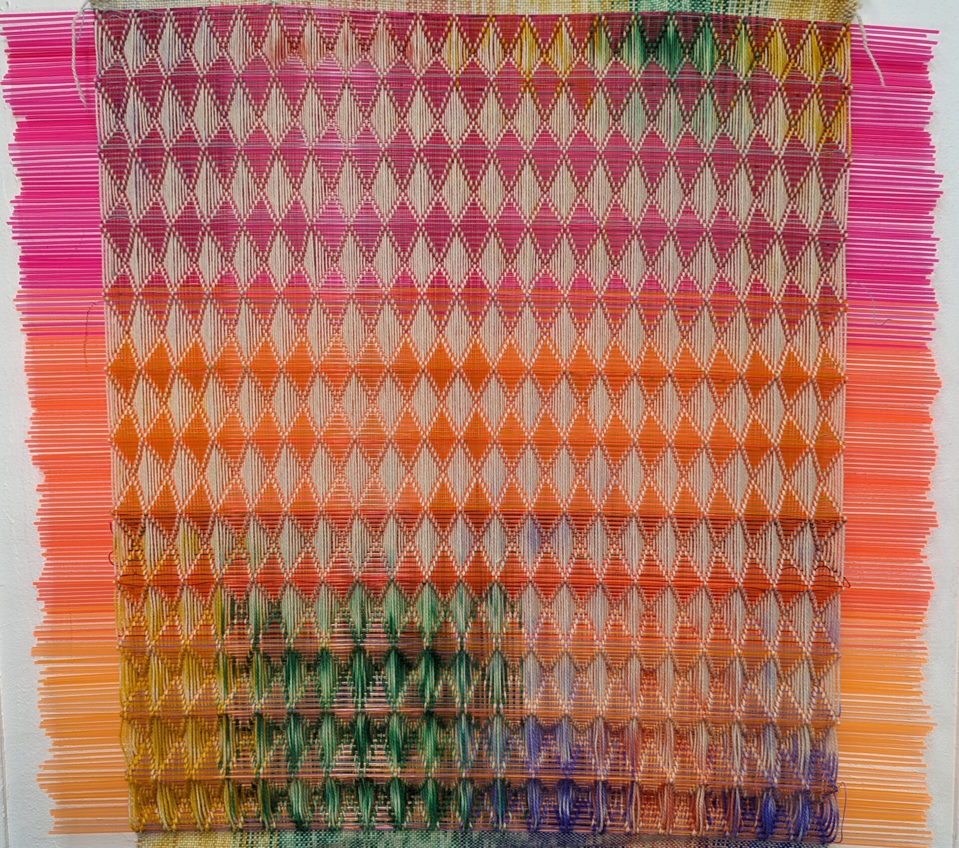 Stephen Tornero is an artist and teacher from Canton, Ohio. While working towards a Masters in Art Education at Kent State University, he had the chance to study weaving and fell in love with this practice. Working in textiles allowed for the combination of vibrant colors, texture, pattern, and transparency that was not successful in other media. Stephen currently teaches visual art and fashion design to 7th and 8th grade students at Plain Local Schools and is an adjunct instructor in Art Education at KSU. While these two practices don’t always intertwine, he believes that a strong art practice and a strong teaching practice enhance each other.