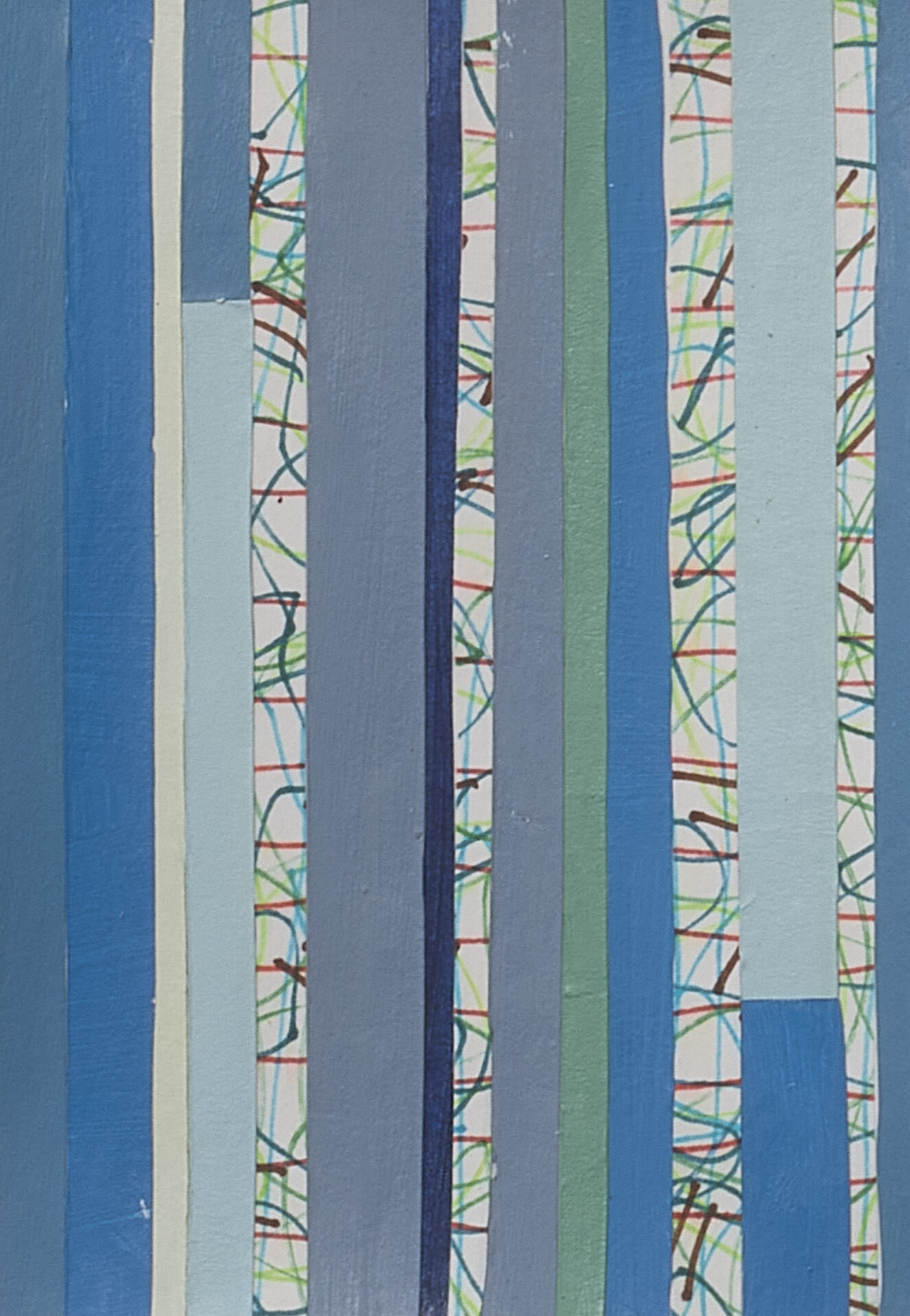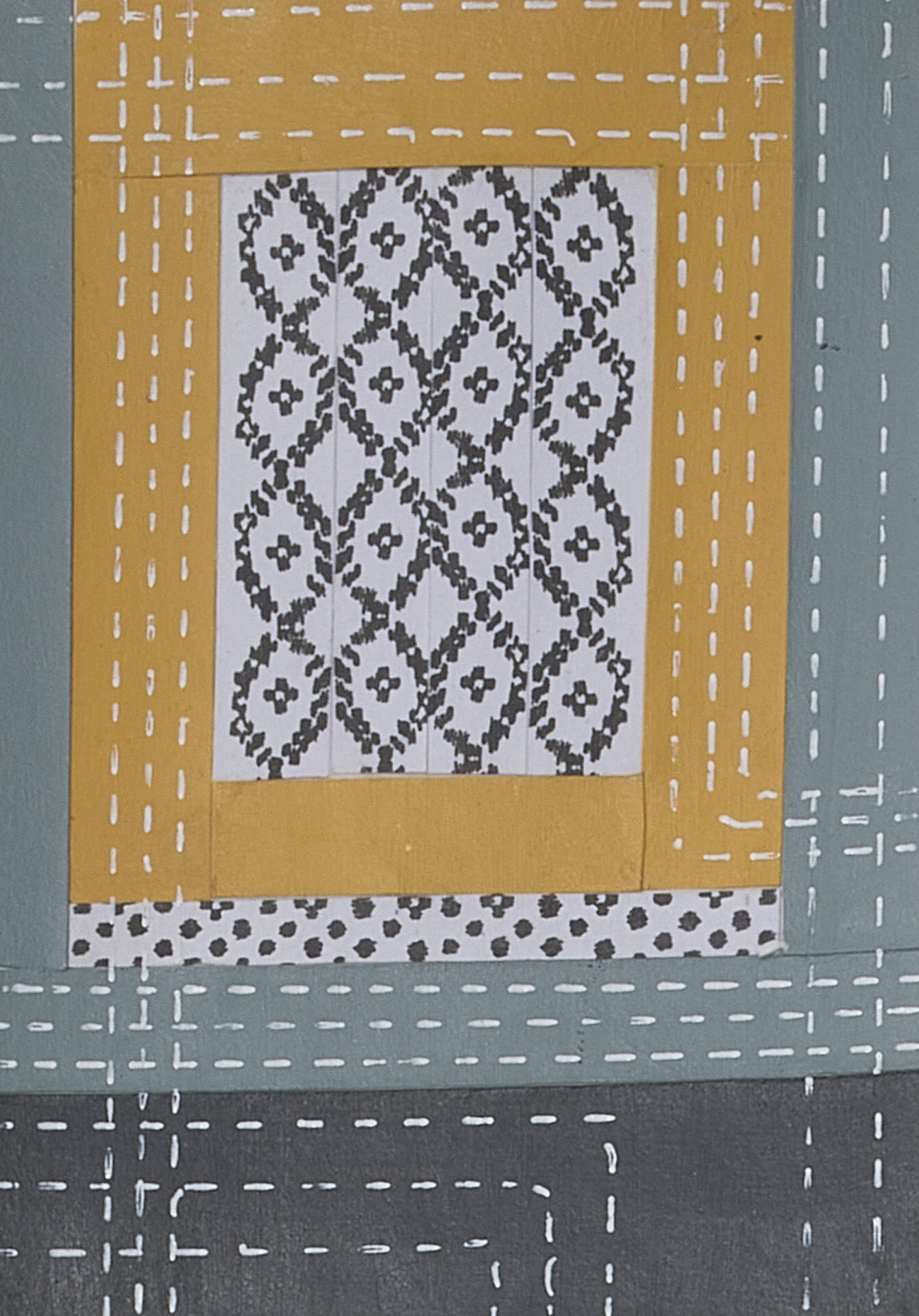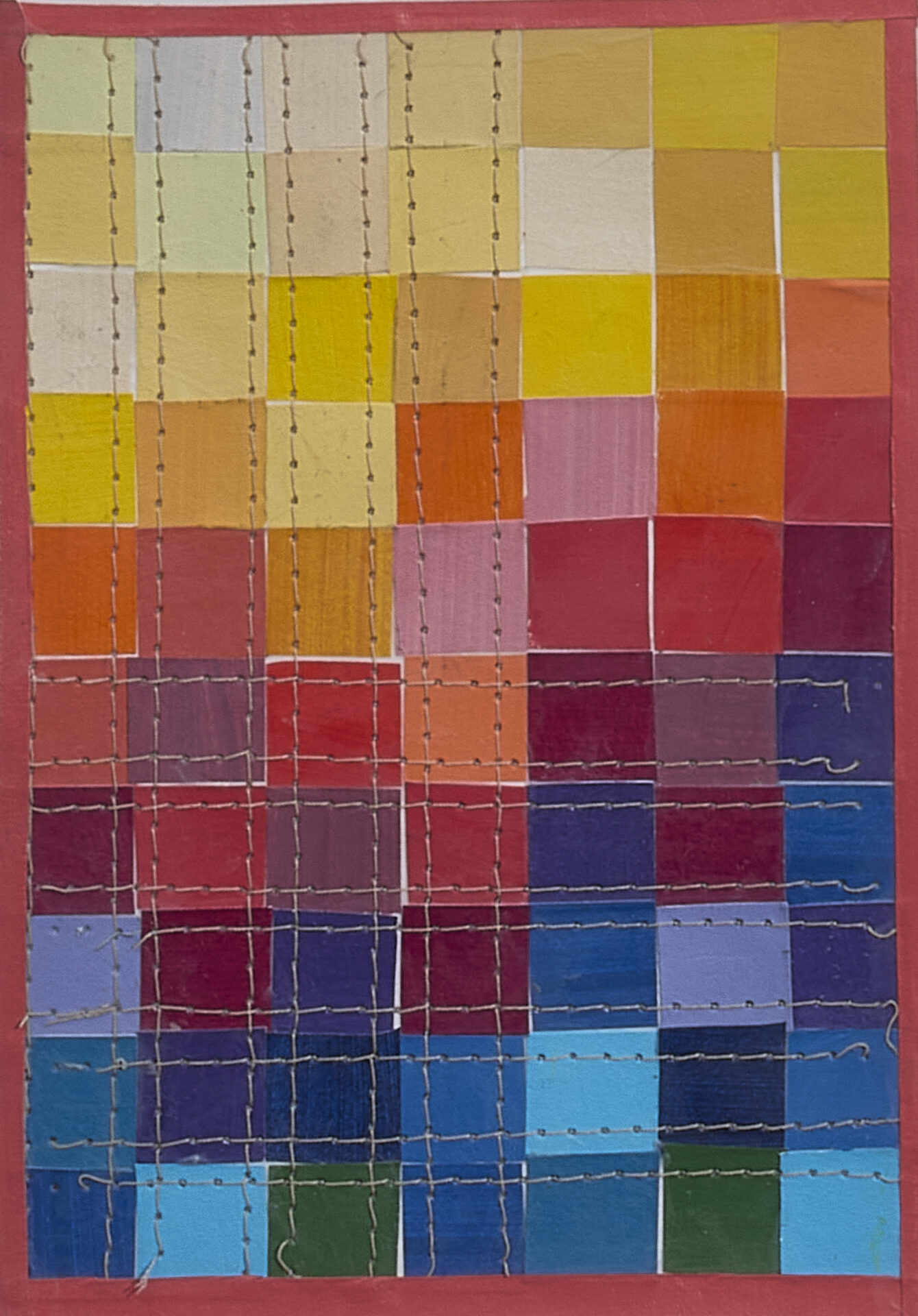 Painted paper collage, thread, 2026